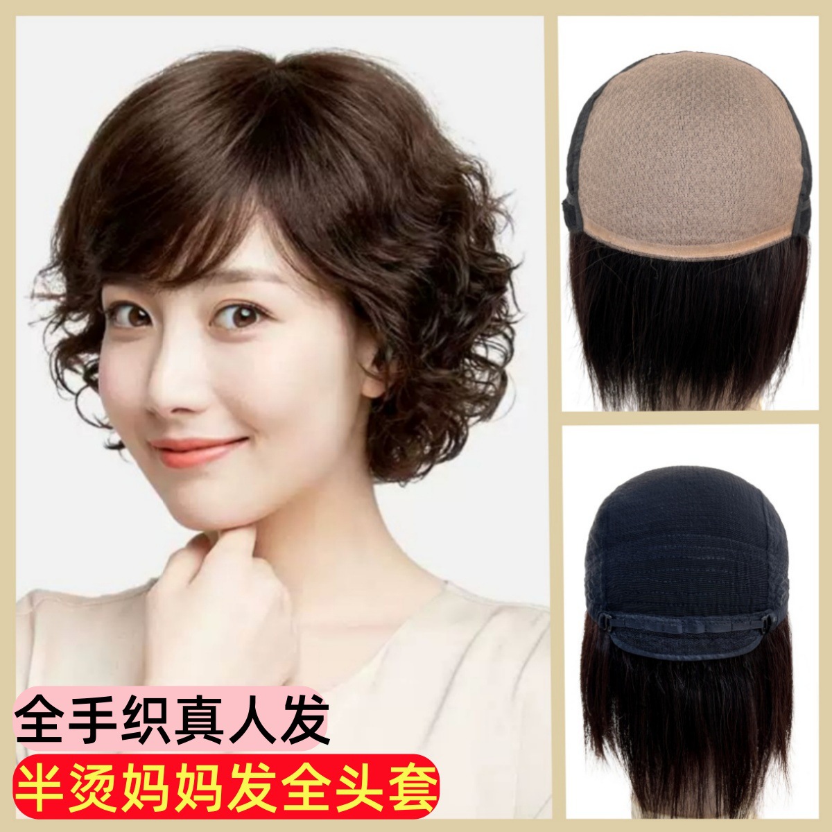 かつら女性の手織り針穴の質感がふわふわしている短髪カバー夏の薄いタイプの白髪を隠す本物のかつらセット