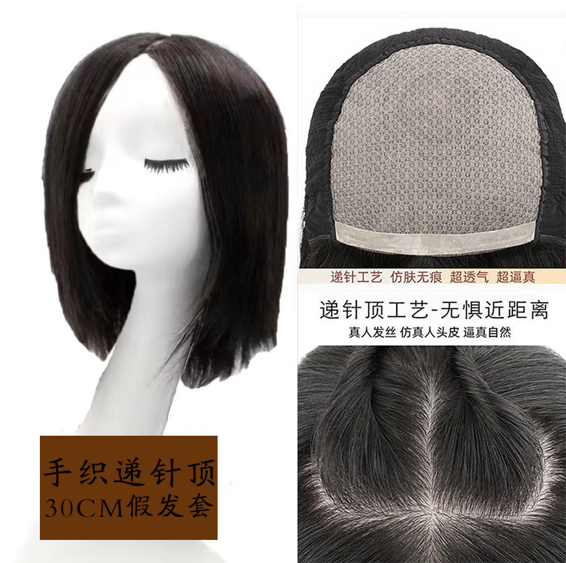 かつら女性の手織り針穴の質感がふわふわしている短髪カバー夏の薄いタイプの白髪を隠す本物のかつらセット