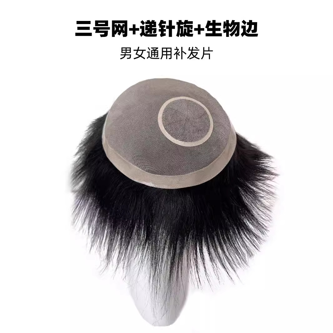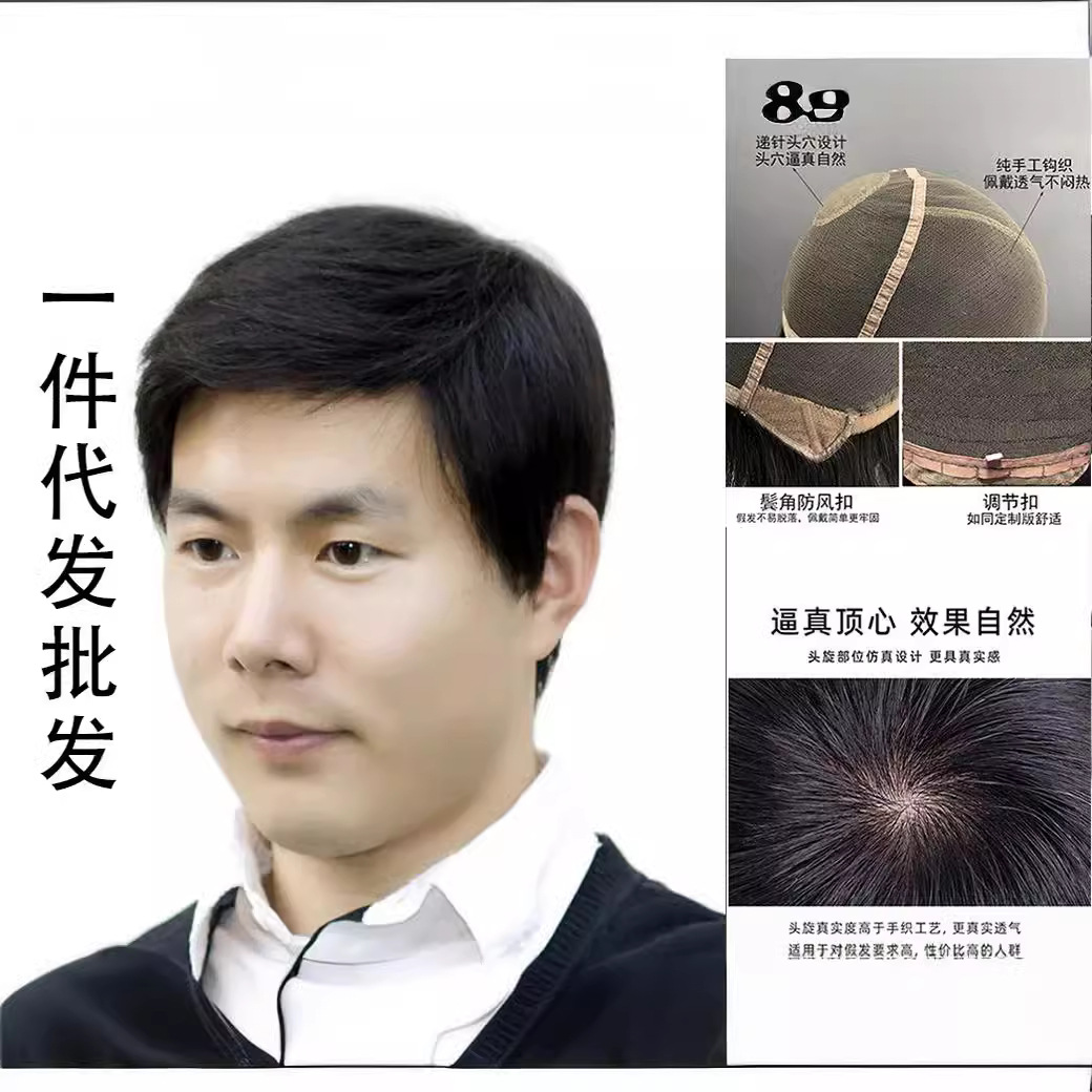かつら男性手織り針穴男性全頭カバー中高年男性かつら無痕ヘアカバー軽薄通気性