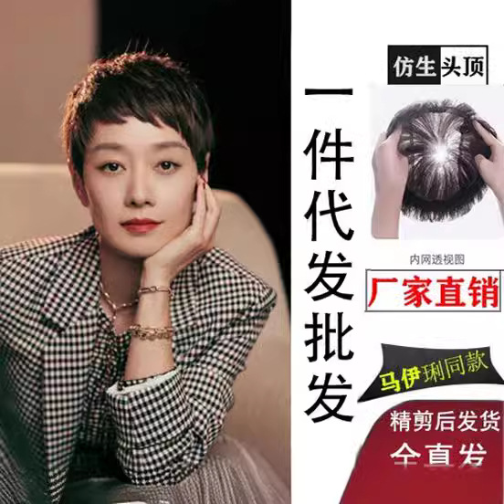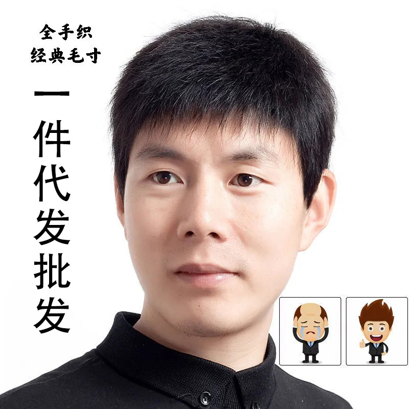 男性郭徳綱髪型生物頭皮髪塊毛寸短髪頭専用超薄かつら