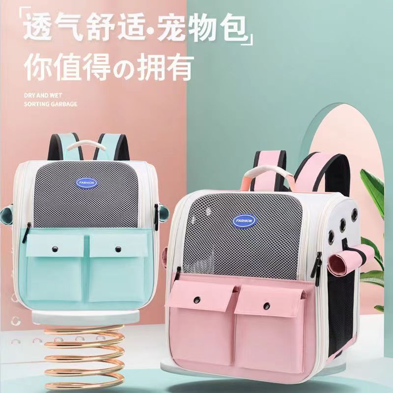 ペットの外出折りたたみ猫通気性ダブルショルダー猫バッグポータブルバックパック透明スクールバッグ犬旅行メーカー