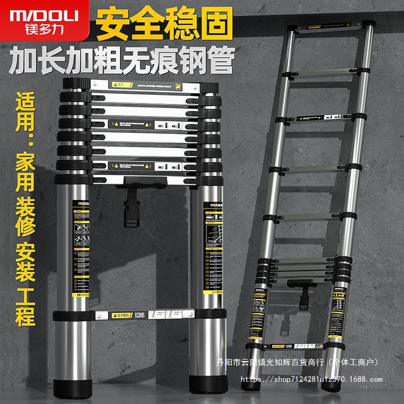 マグネシウム多力昇降折りたたみストレートはしご厚く多機能伸縮はしご家庭用ポータブルステンレス鋼屋内外はしご