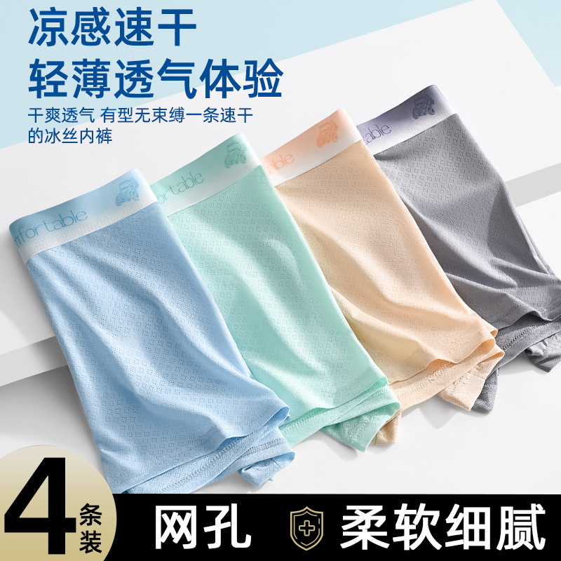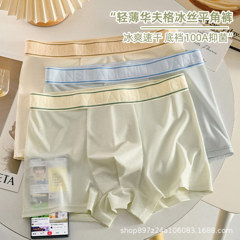 男性用アイスパンツ夏の薄い抗菌無痕平角ズボン男性用通気四角パンツ男性用ショートパンツ