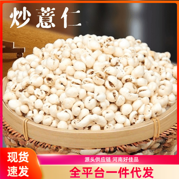ハトムギの実を炒めます。