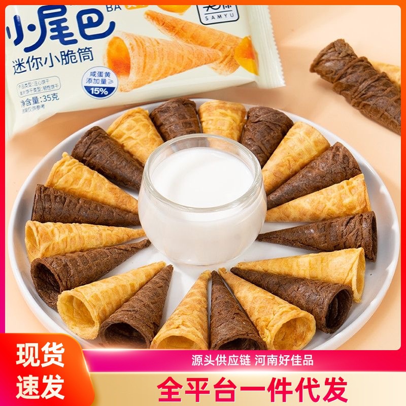 スモールテールミニクリスピーチューブ塩卵黄チョコレート風味カジュアル DIY ケーキデコレーションスナッククリスピーピースドロップシッピング