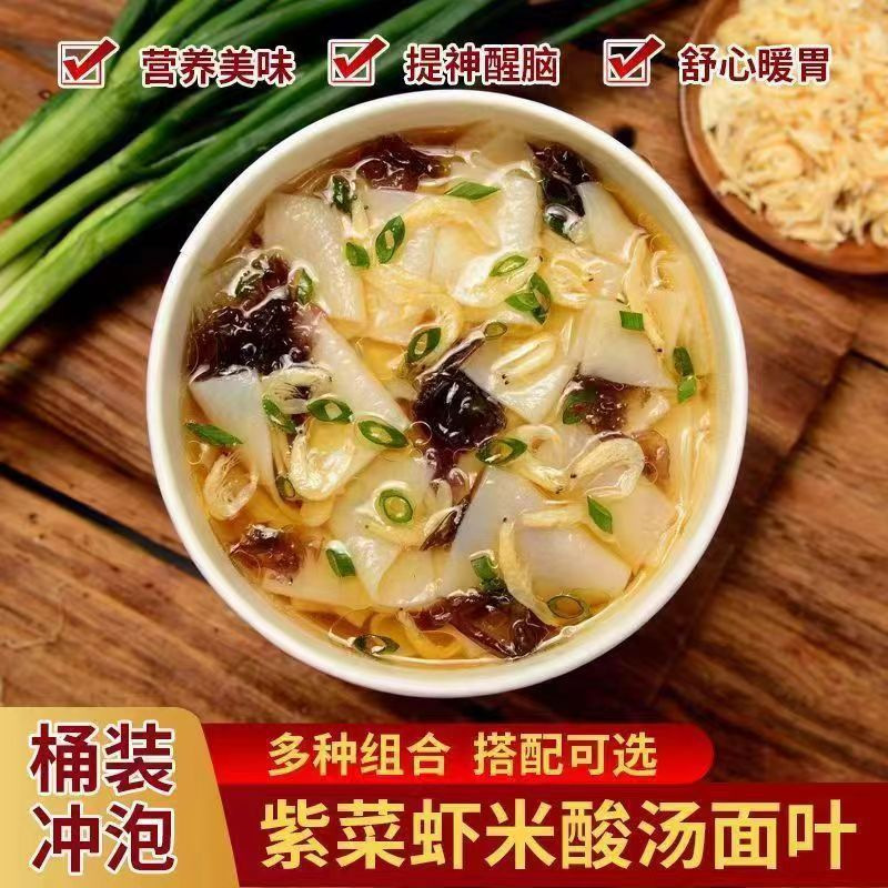 酸っぱいスープの葉の海苔のエビの米のインスタント食品の非揚げの広い麺の桶の中でカップラーメンのインスタントラーメンを詰めます。