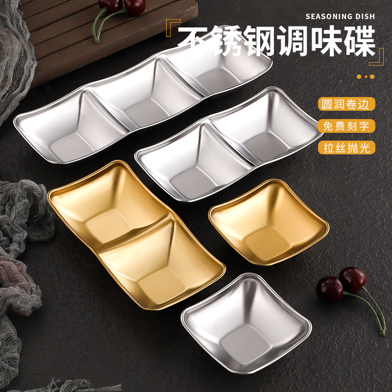 韓国式キムチ調味料304ステンレス調味料銀金色平底菜凉菜焼肉店食器