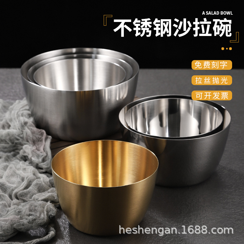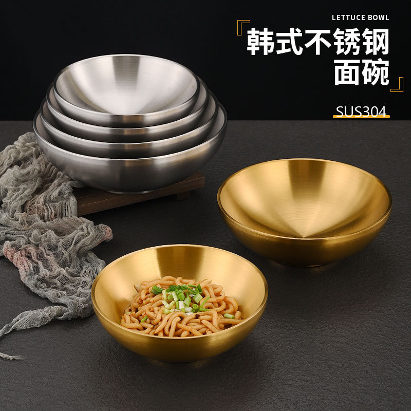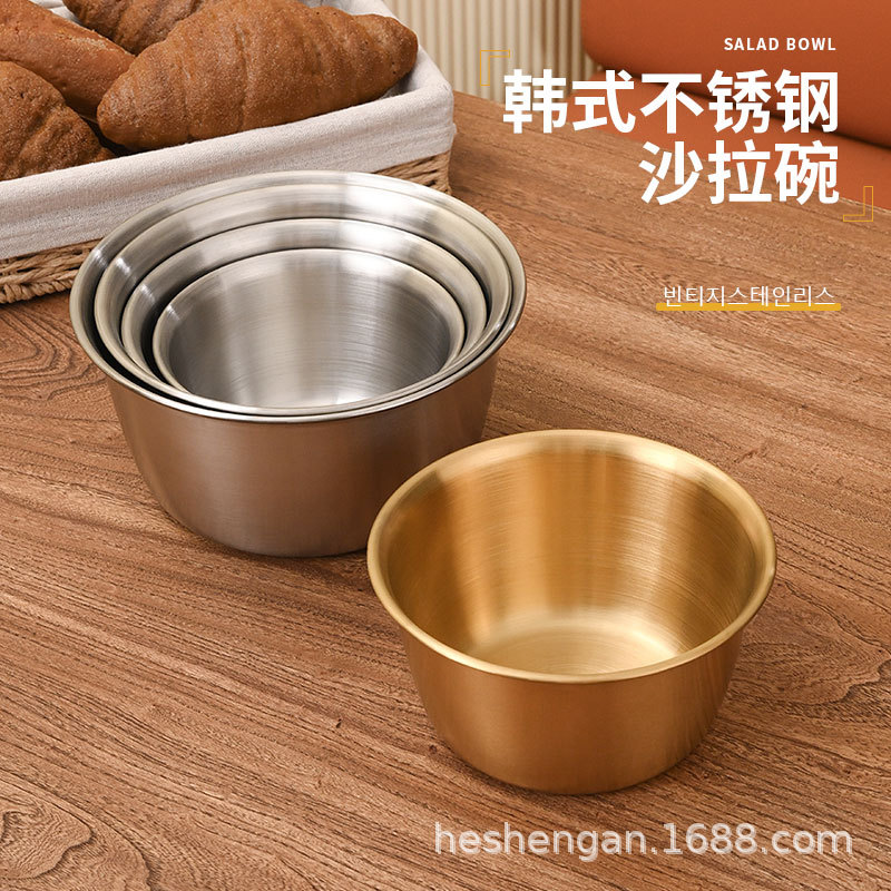 商用韓国式果物野菜ステンレスサラダ碗創意食器セルフ調味料金色冷麺レタス桶