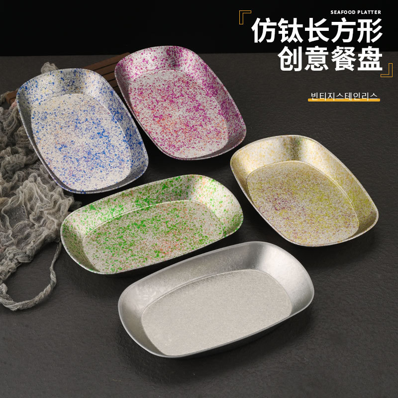 チタンの長方形の食事の皿の魚の皿をまねて携帯します。