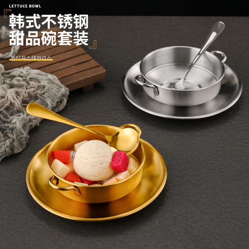 韓国式304ステンレス円形デザート碗創意双耳糖水綿氷砂碗セットキャンディアイスパウダー碗