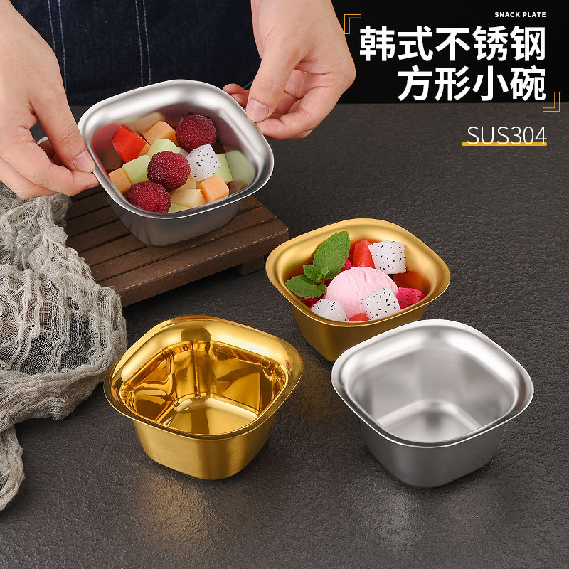 韓国式304ステンレスの四角い軽食の碗のもちの碗は材料の碗の子供の果物のサラダの碗をつけます。