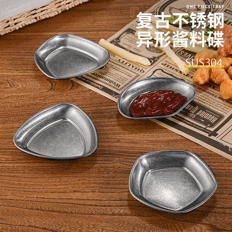 レトロ304ステンレスの味噌皿の不規則な味皿の商用小皿に調味料の碗の焼肉の皿の軽食の皿をつけます。