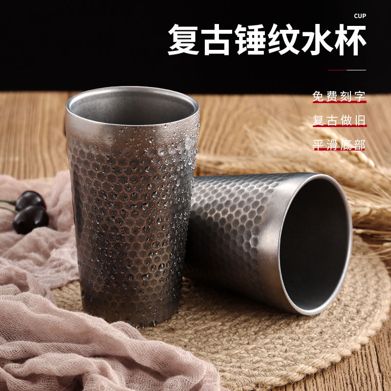 レトロ304ステンレスコップ二重断熱コップダイヤモンド紋業務用古いジュースビールコップのカスタマイズ