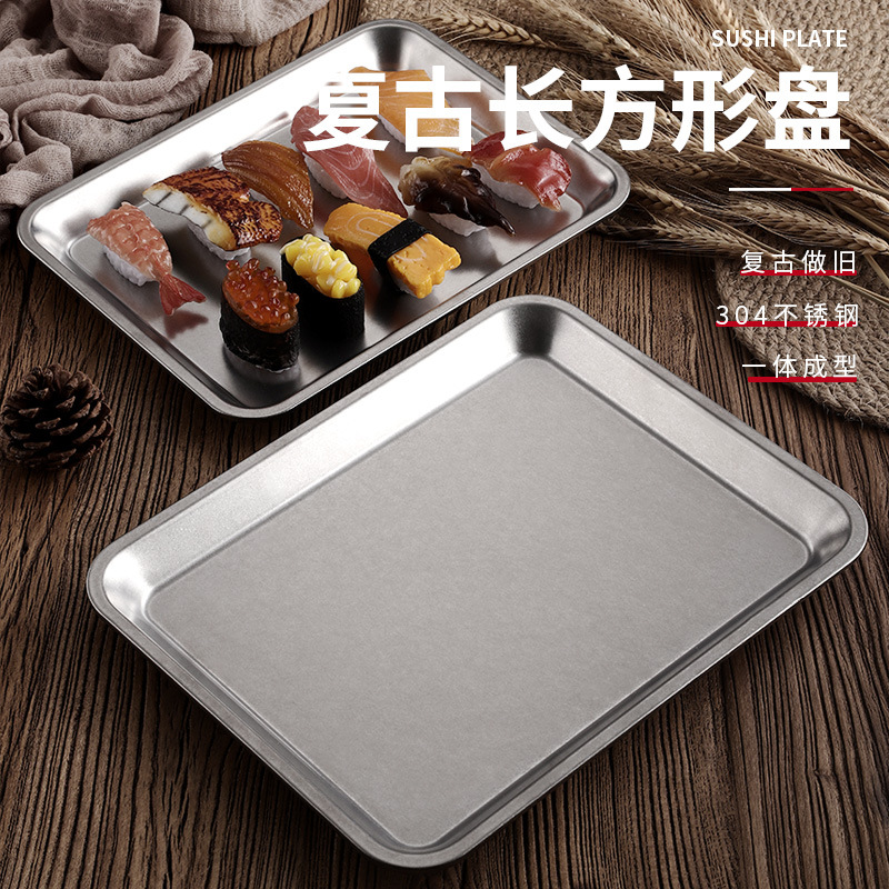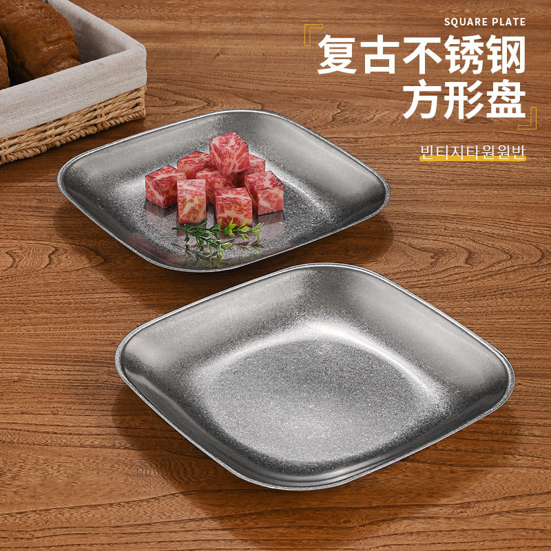 レトロなステンレスのデザートのケーキの皿の四角形の工業風の焼肉の軽食の皿は商用で古いステーキの食事の皿を作ります。
