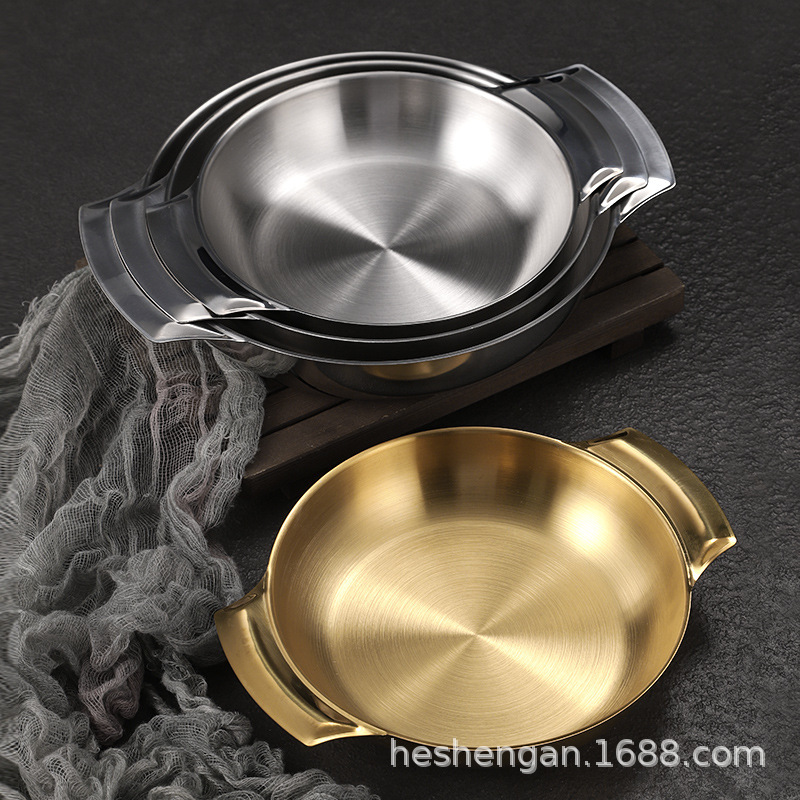 韓国式ステンレスハンドル付き洋食ステーキ皿金色平底バーベキュー皿ピザ軽食皿皿皿
