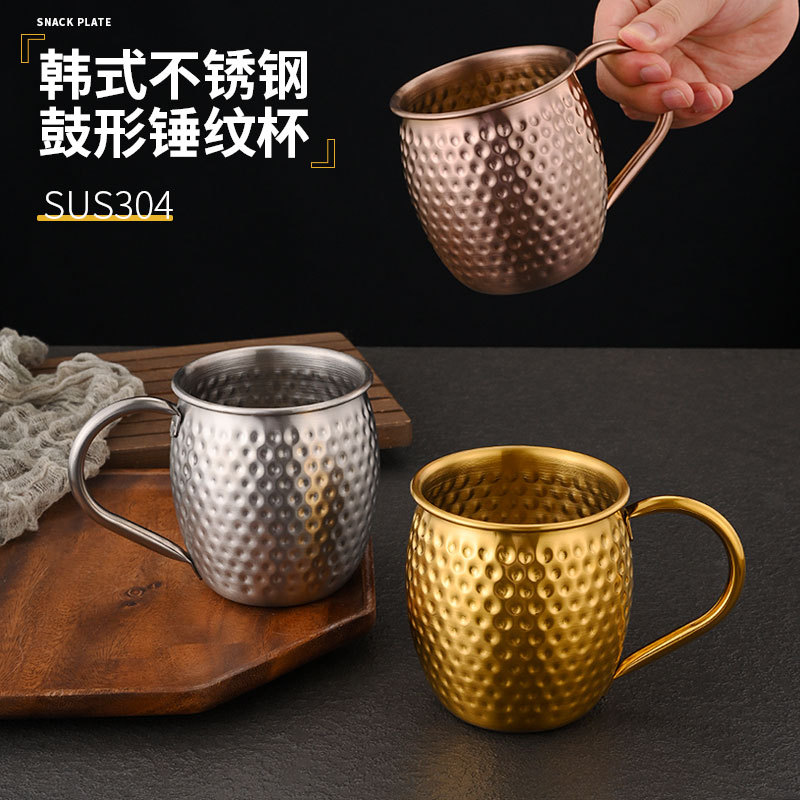 韓国 304 ステンレス鋼カップハンドルコーヒーカップクリエイティブマグハンマーパターンローブワイングラス朝食ミルクカップ