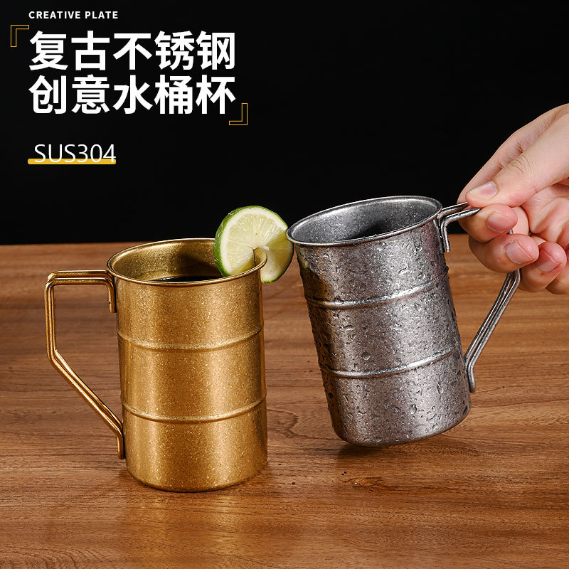 レトロ304ステンレスビールグラス雪花砂マグカップクリエイティブ屋外キャンプ古いカップカスタムロゴ