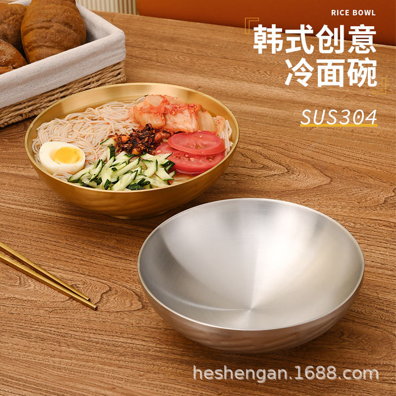 韓国式304ステンレス冷麺碗金色泡麺碗二重ナット粉麻辣湯碗練麺ラーメン碗