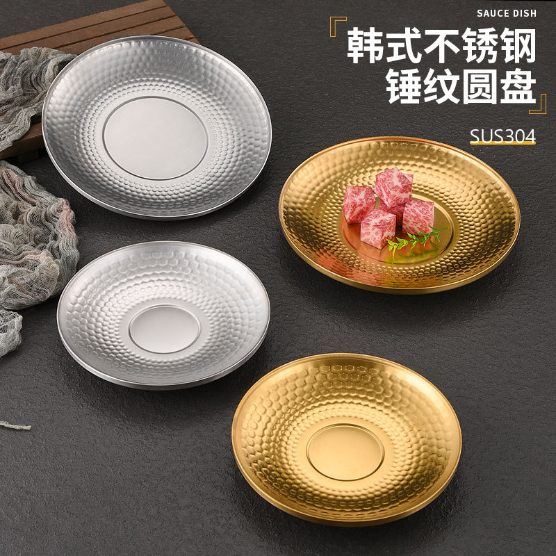 直接供給クリエイティブハンマーパターン 304 ステンレス鋼ディスク商業バーベキューレストランゴールデン浅いプレートスナックデザートケーキプレート