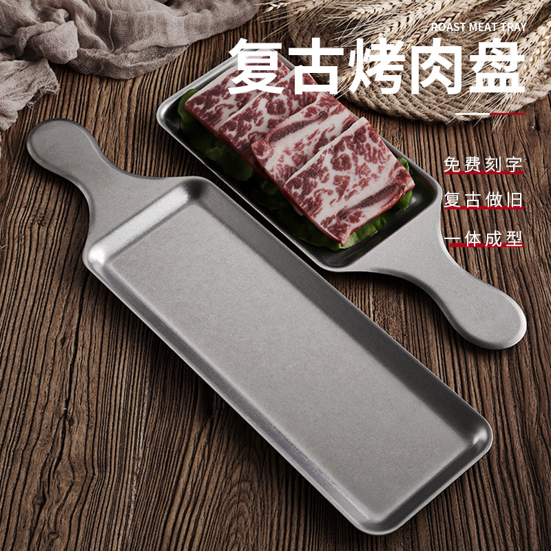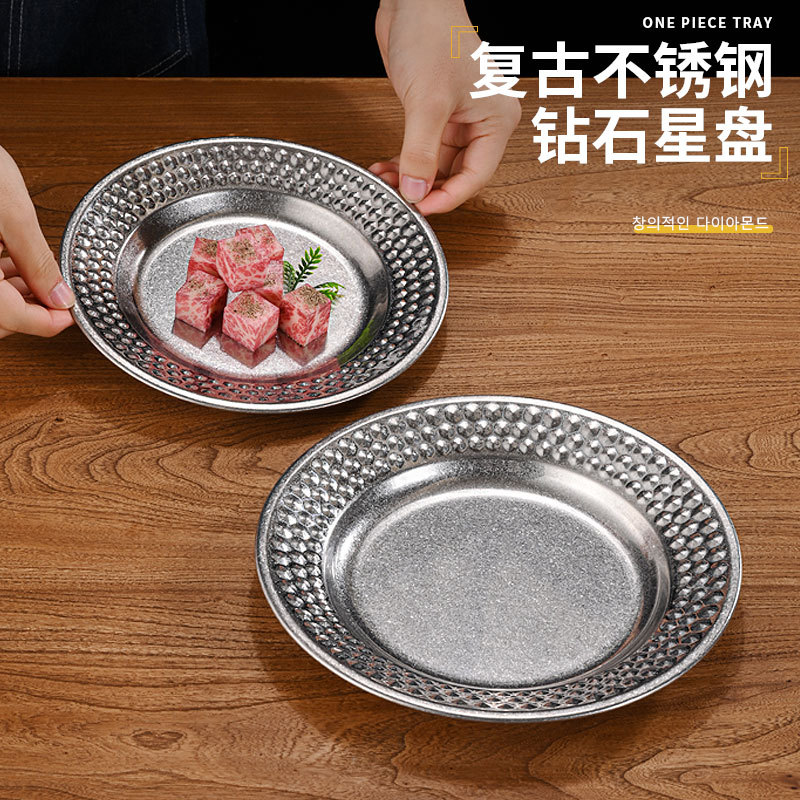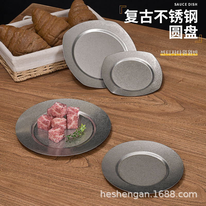 レトロ日本式ステンレスバーベキュー皿工業風平底トレー浅皿ケーキデザート皿吐骨皿