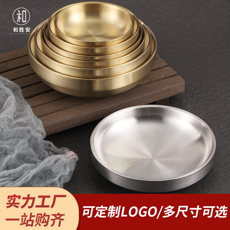 韓国式ステンレス備菜皿金色おかず皿鍋焼肉食品収納皿には自助皿を重ねることができる