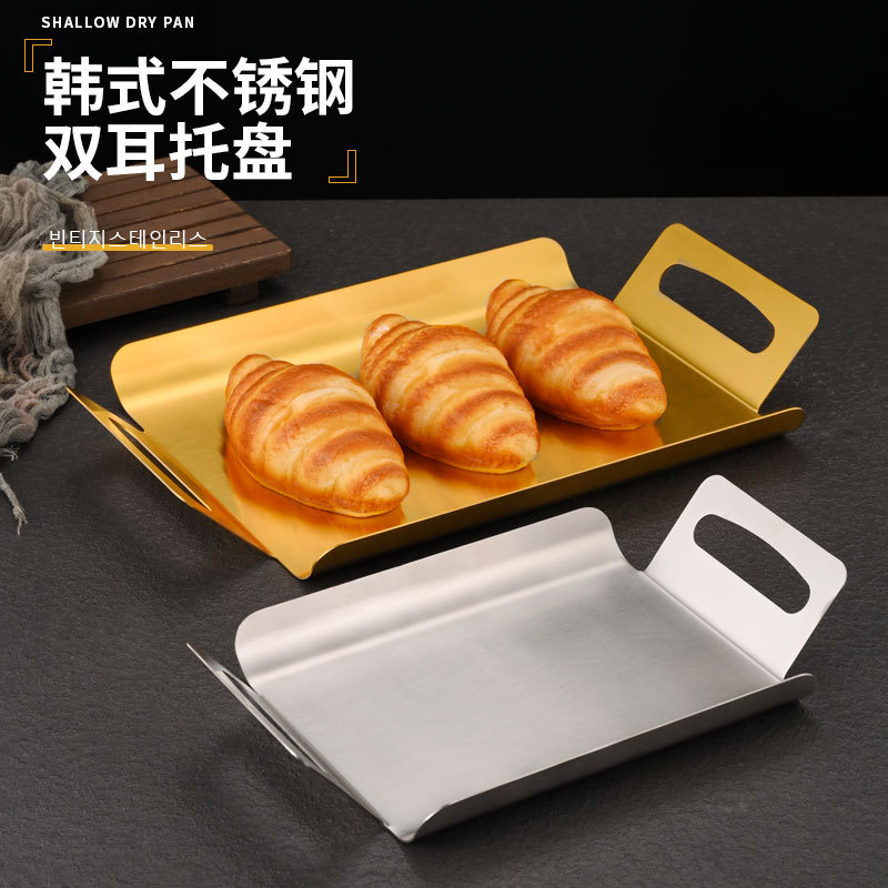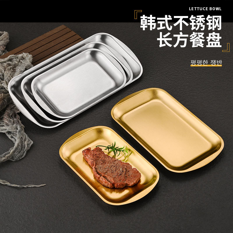 韓国式ステンレス双耳トレー長方形厚手の料理皿のお茶皿はパンケーキのデザート皿を焼きます。