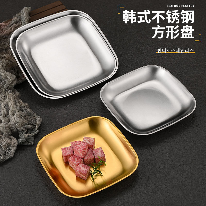 韓国式304ステンレスセルフ焼肉皿多機能円盤おかず皿鍋焼きは料理皿を重ねることができます。