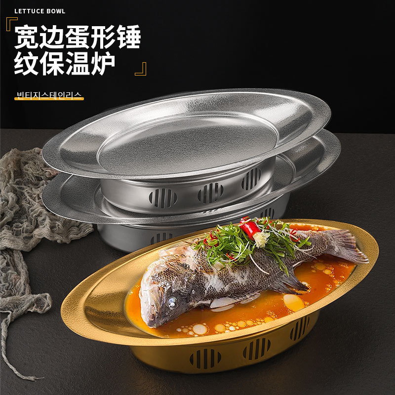 韓国ステンレス鋼双耳楕円形ドライポットアルコールキャンドル加熱魚ストーブ断熱ストーブクリエイティブ卵型蒸し魚プレート