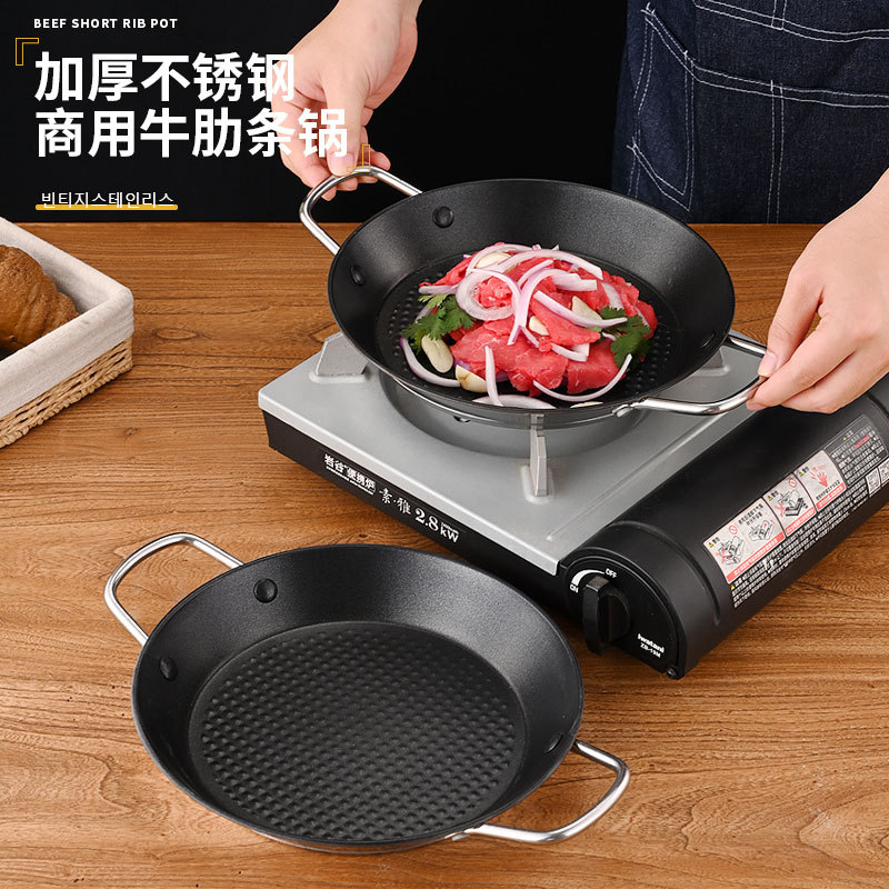 牛の肋骨の鍋の商用のチェーン店の同一種類の平底は鍋をつけないで底のスペインの海鮮の皿の双耳の焼肉の鍋を覆います。