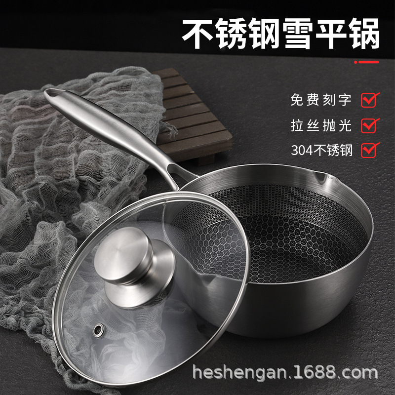 304ステンレスの雪平鍋の日本式のコーティングなしの鍋の家庭用補助食の小さい乳鍋のスープの鍋の通用の麺の鍋