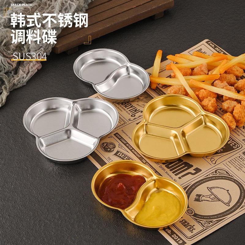 韓国式304ステンレス味噌皿商用金色おかず皿ケチャップ黒椒マスタード調味皿