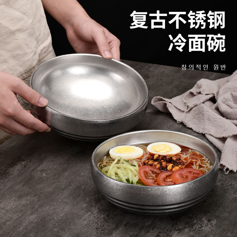 レトロ旧304ステンレスボウル単層商用韓国式焼肉料理ソースボウルご飯ボウル調味料ボウル