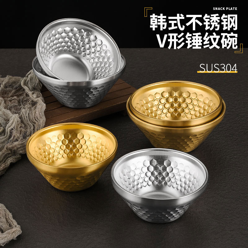 韓国 304 ステンレス鋼の笠ボウル二層槌目サラダボウル V 字型ライスボウルデザート鍋レストランかき氷ボウル