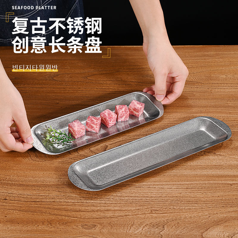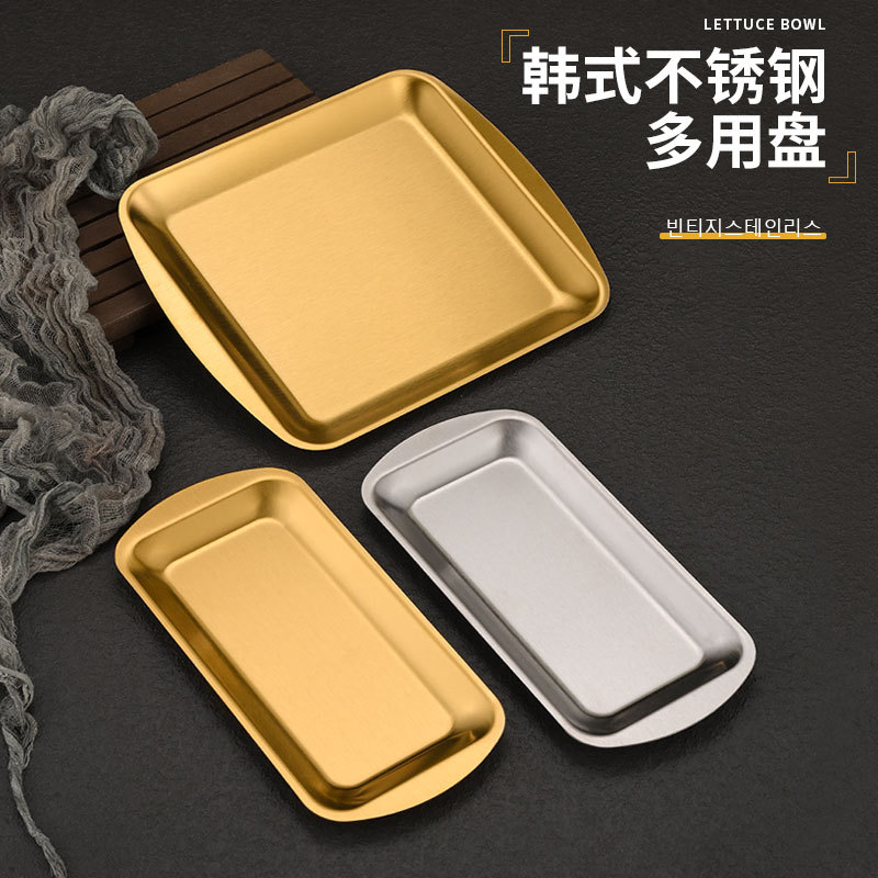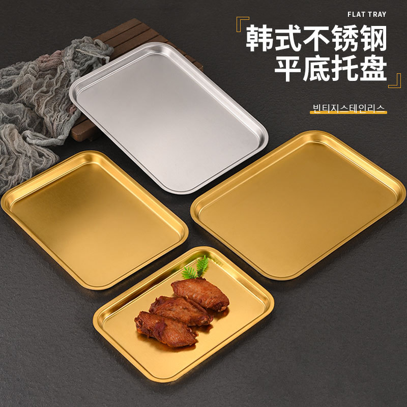 韓国式トレー浅皿フライパンデザートケーキ皿ステンレス寿司バーベキュー焼肉食器長方形皿