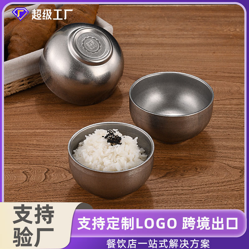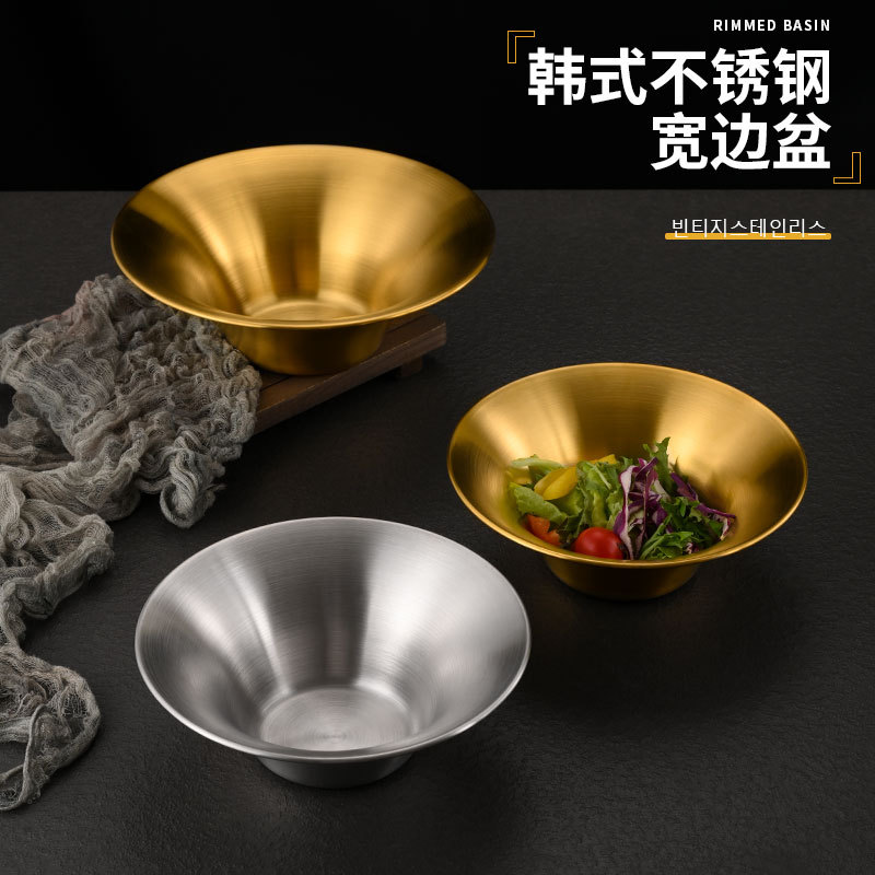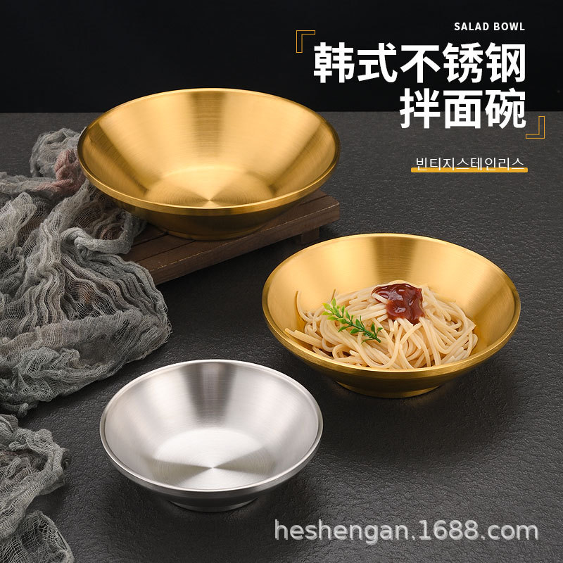 メーカー直販韓国式ステンレス冷麺碗商用金色二層練麺練飯碗ナット粉斗笠碗