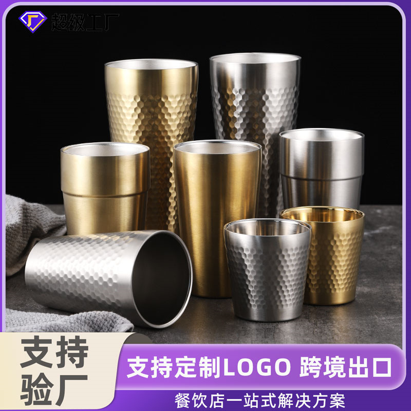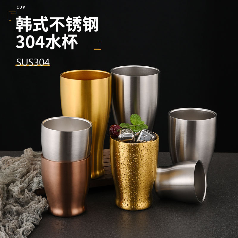 304ヨーロッパ式ステンレスビールカップ高脚ジュースカップ焼肉二重パーマ防止カップ飲料牛乳カップ