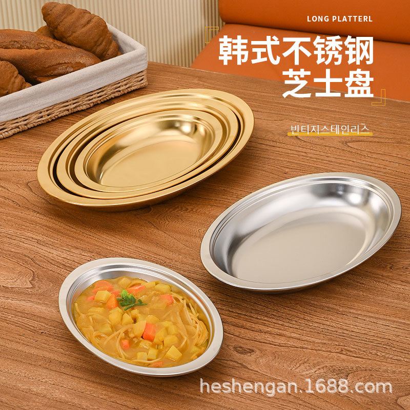 韓国式ステンレスは楕円形の皿のチーズの皿を深めて魚の専用の皿を蒸します。