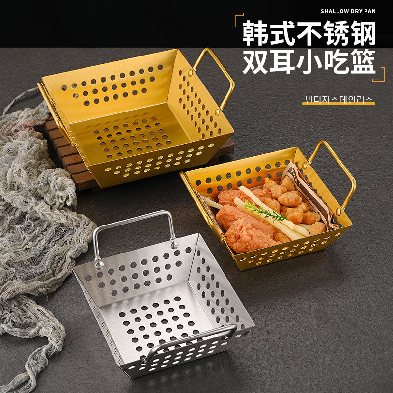 ステンレスの角型の揚げ物のかごのフライドポテトのフライドチキンのかごの両耳に太い水切りの果物のかごの油の条を加えて軽食のかごを濾過します。