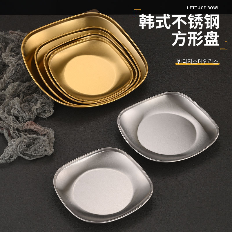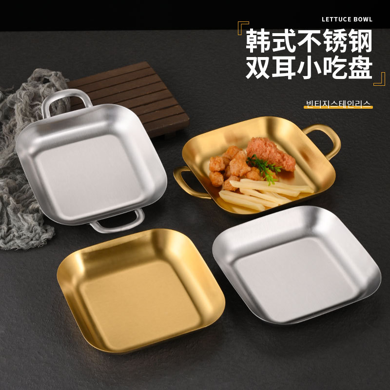 韓国式ステンレス焼肉皿平角型トレースナック皿デザート寿司両耳鍋料理皿