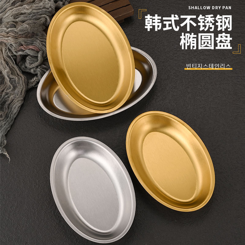 韓国式ステンレスの楕円形の円盤家庭用のフライパンの皿のバーベキューの皿の台所の厚い蒸し魚の皿の食事の皿