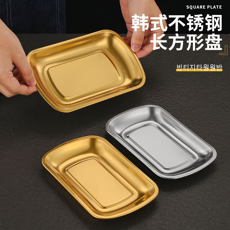 工場直接供給 304 ステンレス鋼正方形プレート商業ゴールデンバーベキュープレートライスロールプレート平底トレイスナックプレート