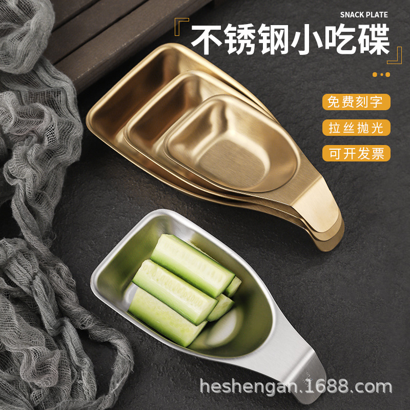 韓国風調味料304ステンレスソース皿商用金色ステーキソーススプーン海老滑肉丸スプーン型皿皿