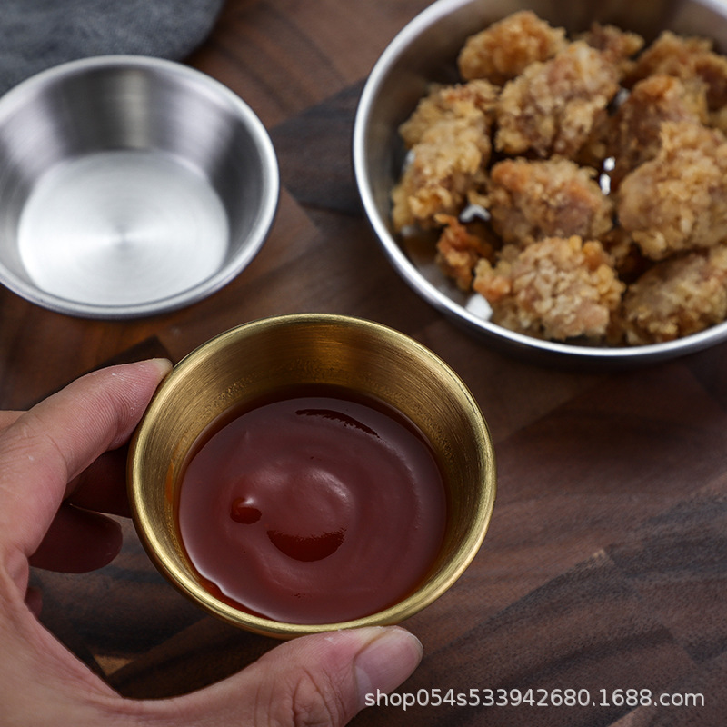 工場は韓国式304ステンレスソース皿の金色の商用焼肉調味料皿を提供しています。