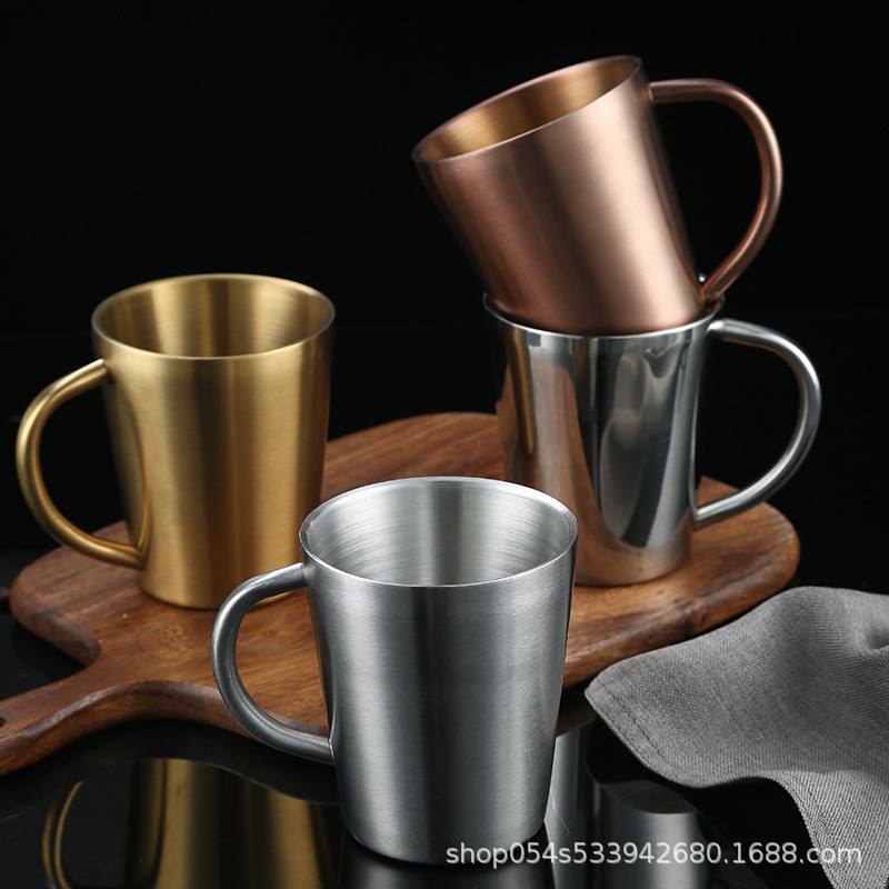メーカー直供二重断熱304ステンレスコップ家庭用ハンドル付き牛乳マークビールコーヒーカップ