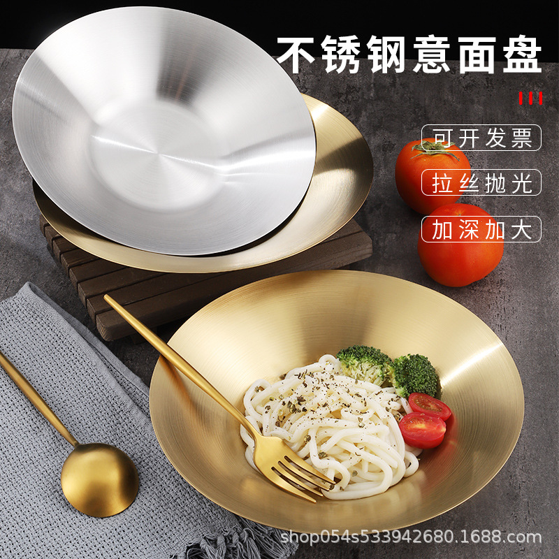 ステンレス円盤金色洋食皿パスタ皿平底浅皿デザートケーキ皿菓子皿カスタムロゴ