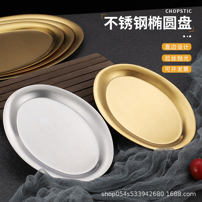 304ステンレス楕円皿金色焼き皿浅平厚い魚皿皿皿旦形トレーデザート皿
