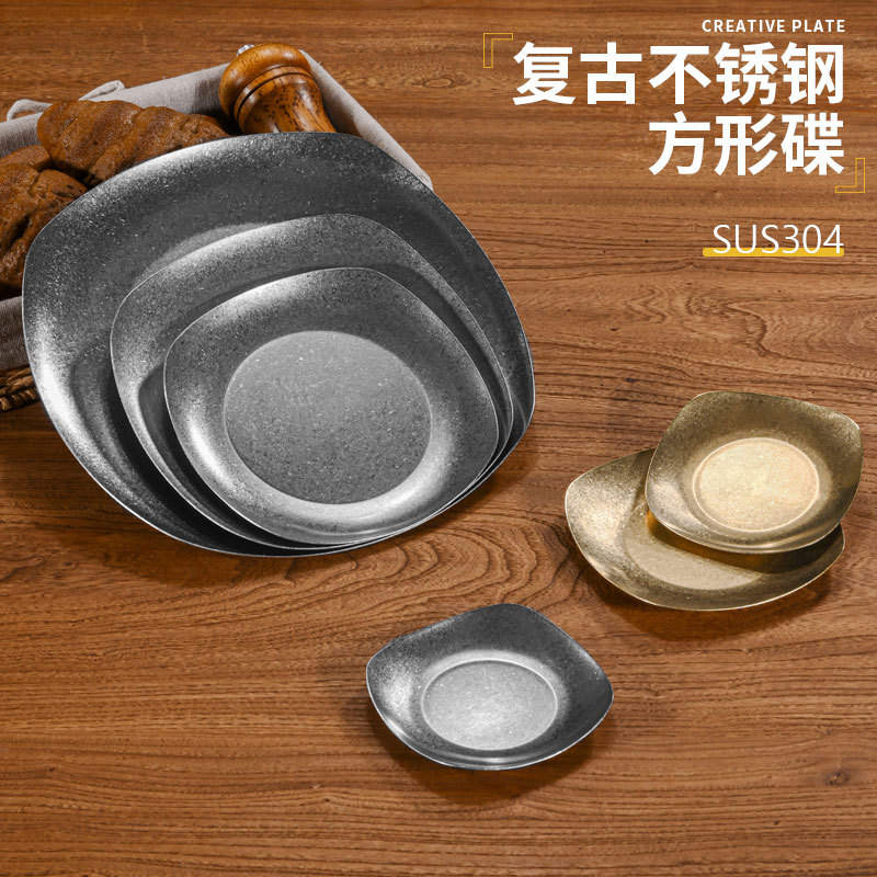 レトロにして古い日本式304ステンレス調味料皿の四角い軽食皿の冷たい料理皿の商用キムチ皿のカスタマイズ