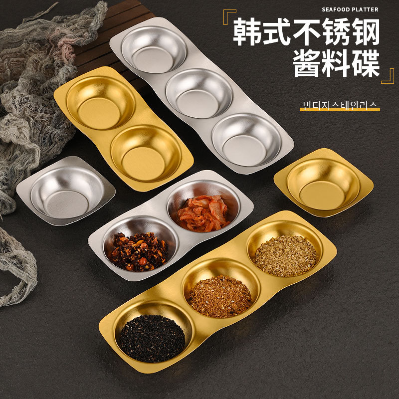 韓国ステンレス製ソース皿、バーベキューショップ調味料皿、マルチグリッド調味料皿、乾燥調味料皿、スナック皿