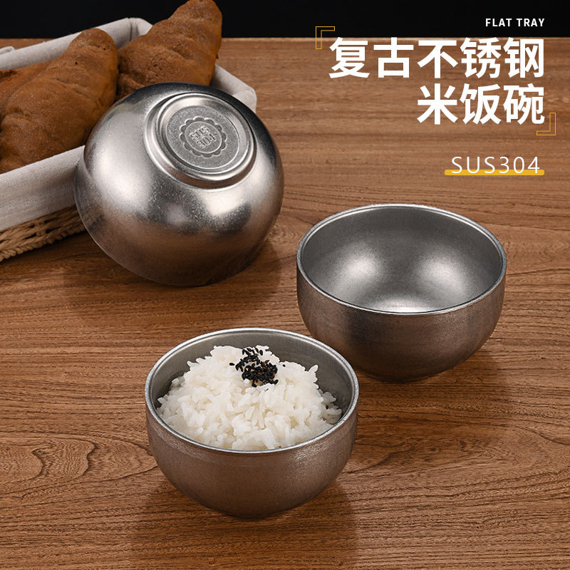 レトロな古いステンレス鋼は食事皿の創意を深めます。