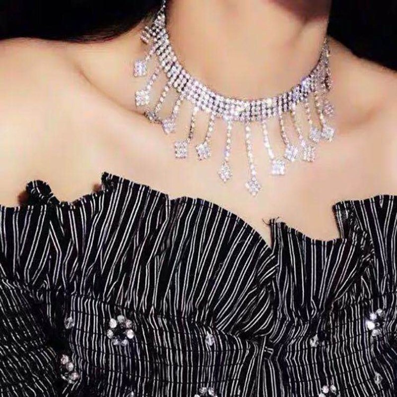 欧米のファッションの女性の流蘇の首の鎖の贅沢なきらめきのドリルのいっぱいなドリルの首の鎖の鎖のチェーンのネックレスのメーカーは直接供給します。